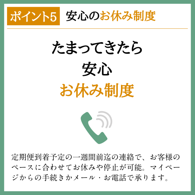 ご解約、お休みのご依頼は3回目のお届けが完了した後に承ります。 (お休みは連続2回まで可能です)