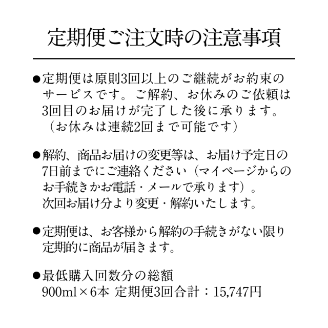 ・900mlx 6本定期便3回合計:15,747円